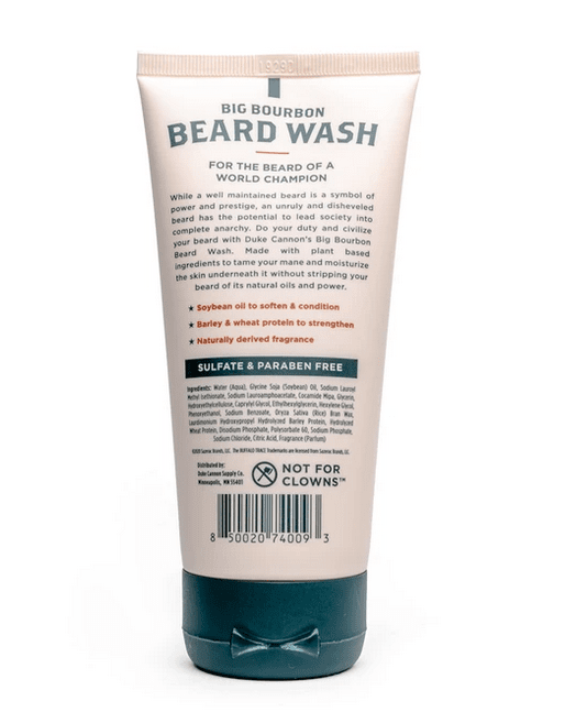 Do your duty and civilize your beard with Duke Cannon's Big Bourbon Beard Wash. It's made with plant-based ingredients to tame your mane and moisturize the skin underneath it without stripping your beard of its natural oils and power.